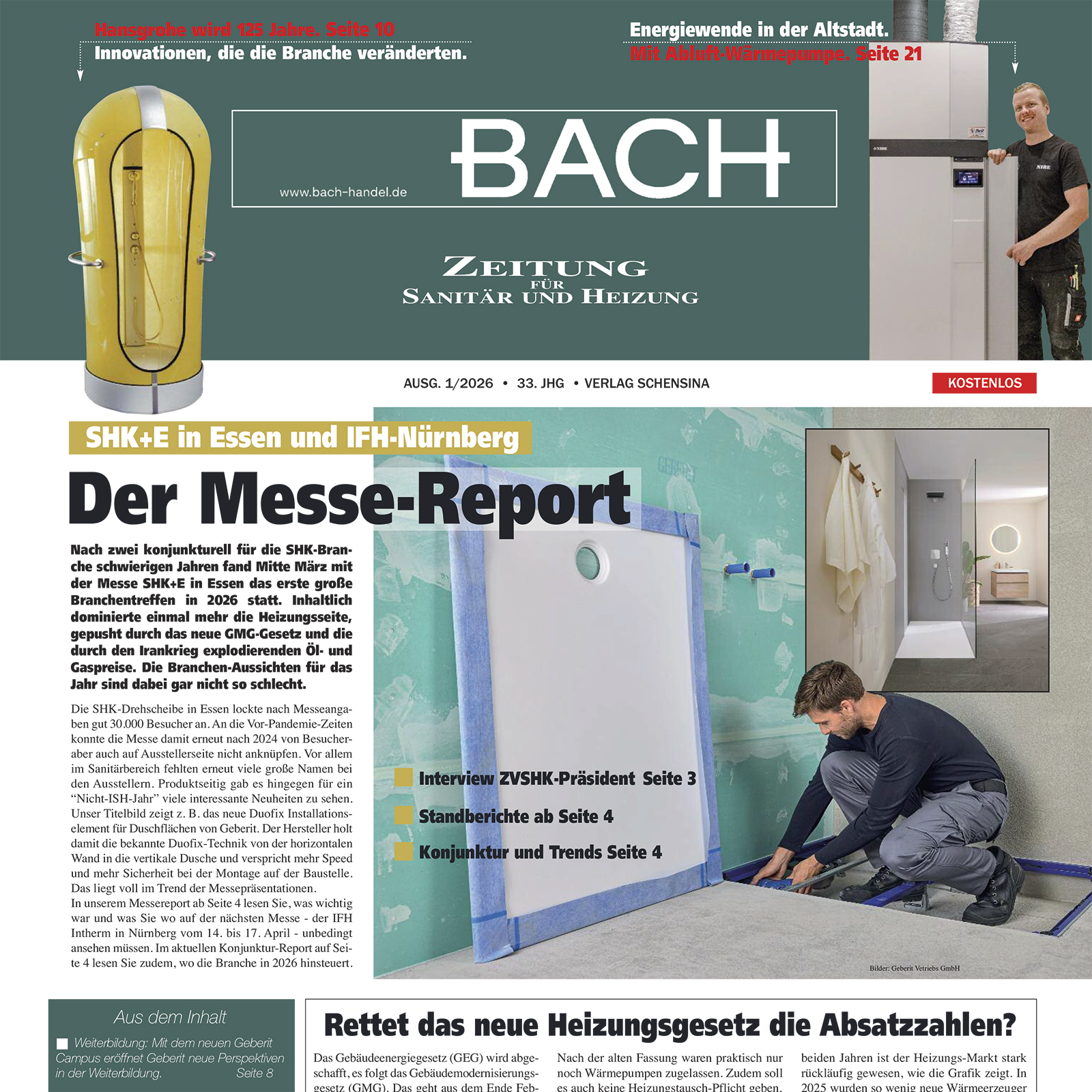 Ergänzt wird die Ausgabe durch praxisnahe Technikberichte, Produktneuheiten und Weiterbildungsmöglichkeiten für Fachbetriebe.
